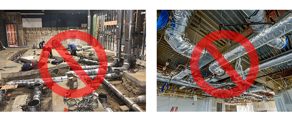 - No ceiling ductwork or floor piping