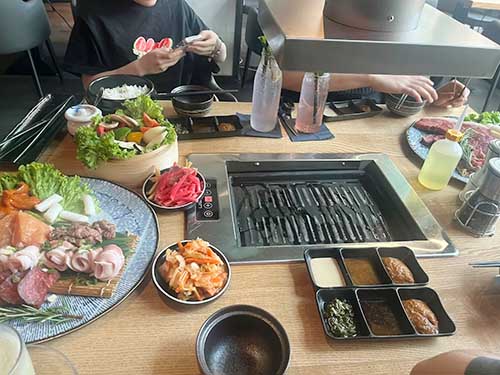 Our commercial smokeless Samgyupsal grill table, designed for Korean BBQ restaurants. Built-in smoke control system, durable materials, and a modern dining experience.